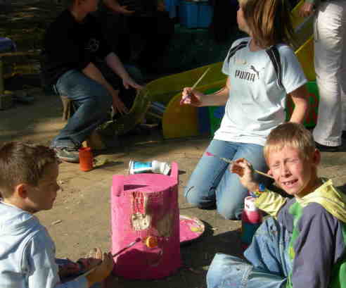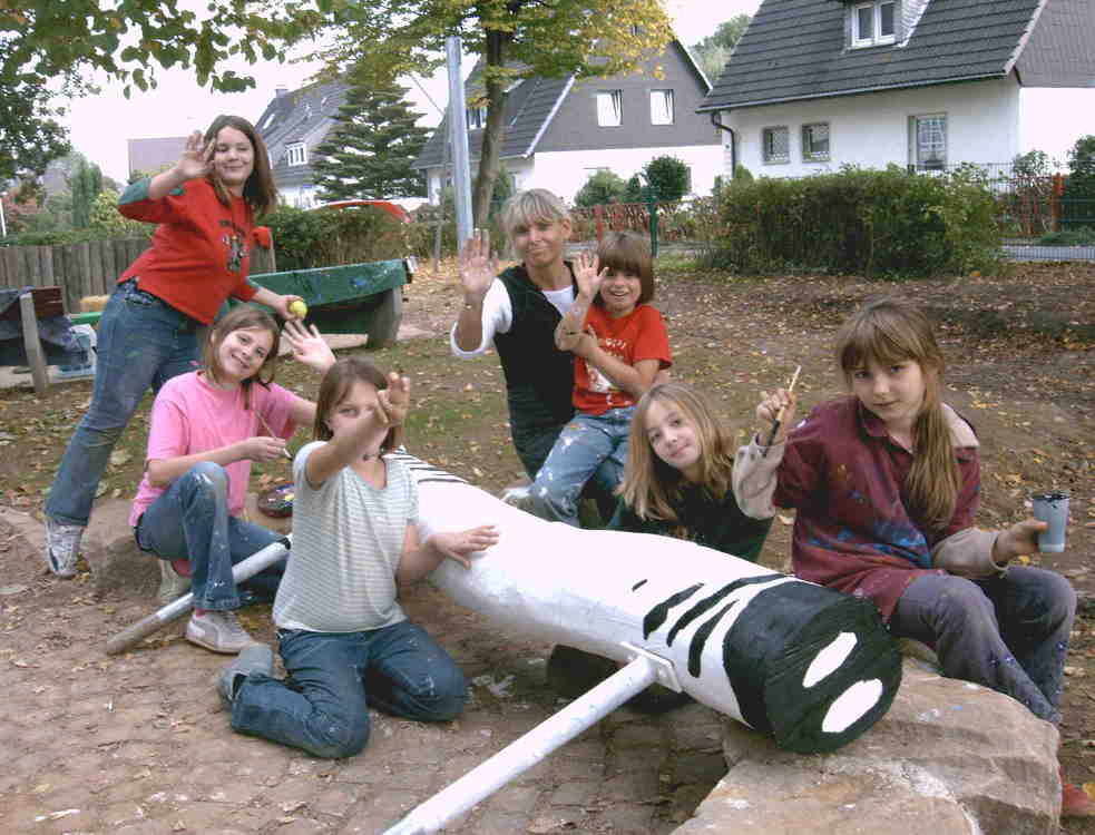 In Zusammenarbeit mit Objektdesignerin Helga Kruska, dem Kinder- und Jugendrat der Stadt Iserlohn und der Kunstfabrik Casa b in Iserlohn sowie ca. 40 - 50 Kindern wurden die Spielplätze Kornfeldstraße in Hennen und im Volksgarten in Letmathe umgestaltet. |